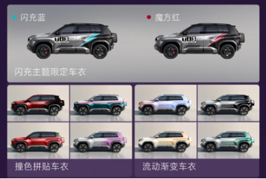 为满足用户的个性化需求,闪充版正式推出新外观色‘星尘紫’,新内饰色‘灰蓝双拼’,还有14种潮改方案及16种小书包轻潮改方案,让每一位用户都能尽情展示自我。